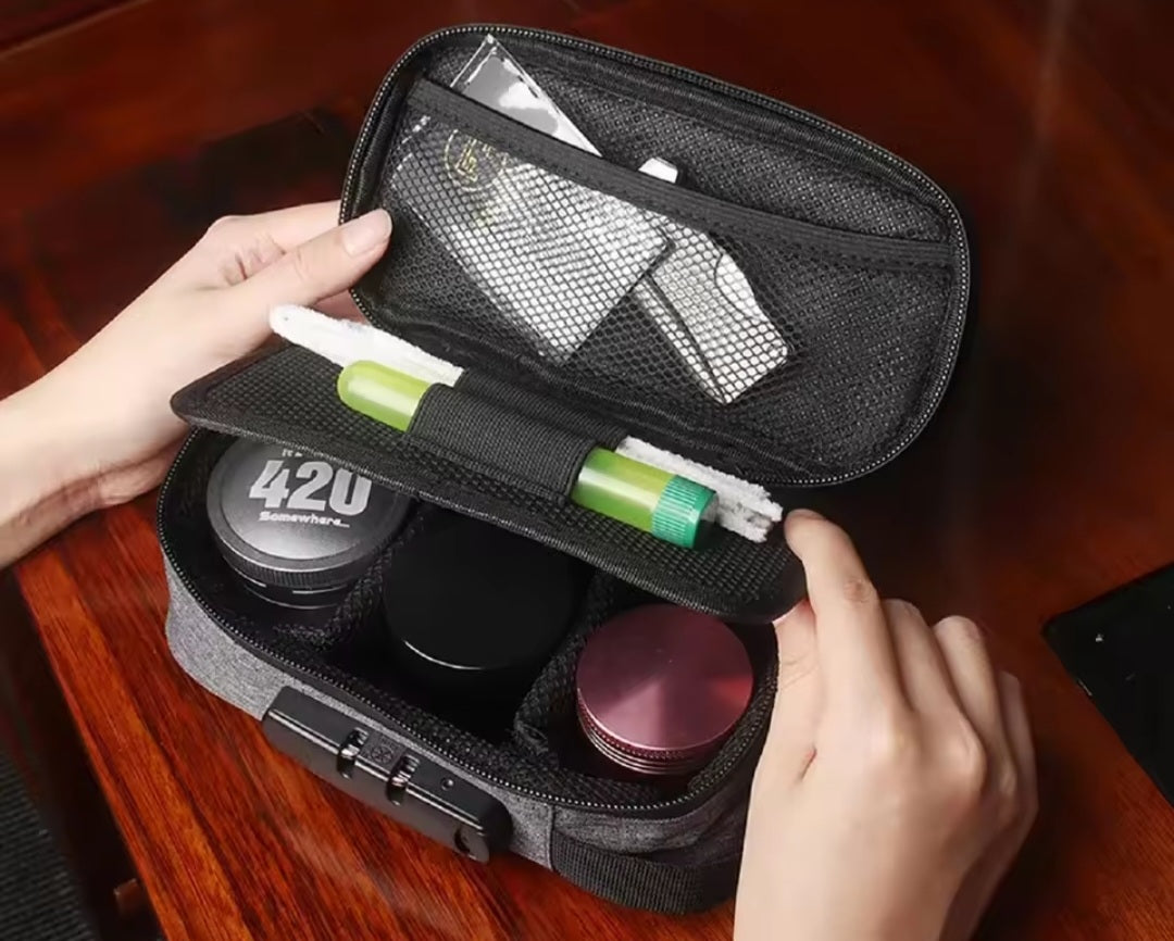 Keep your belongings secure and discreet with the Za’Daze LockEase Smell-Proof Bag. Featuring activated carbon technology and a secure lock, it blocks odors while keeping your essentials safe and secure. Discreet, durable, and travel-ready — the Za’Daze LockEase Smell-Proof Bag combines odor control with built-in lock protection for total peace of mind.
